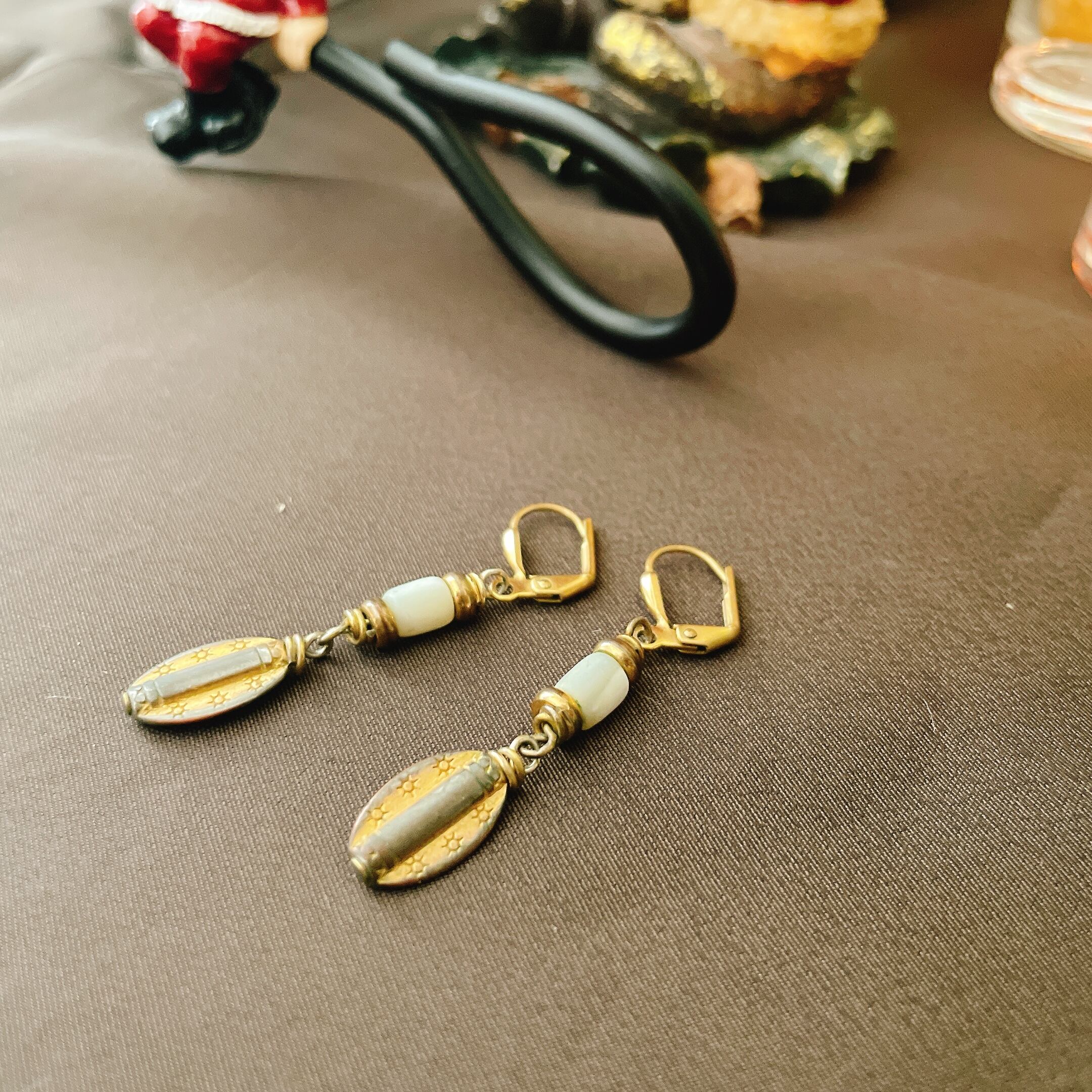 こちらのアンティークピアスは、ヨーロッパらしい教会を思わせるようなデザインと、ただようこのアンティークな色感に惹かれました。